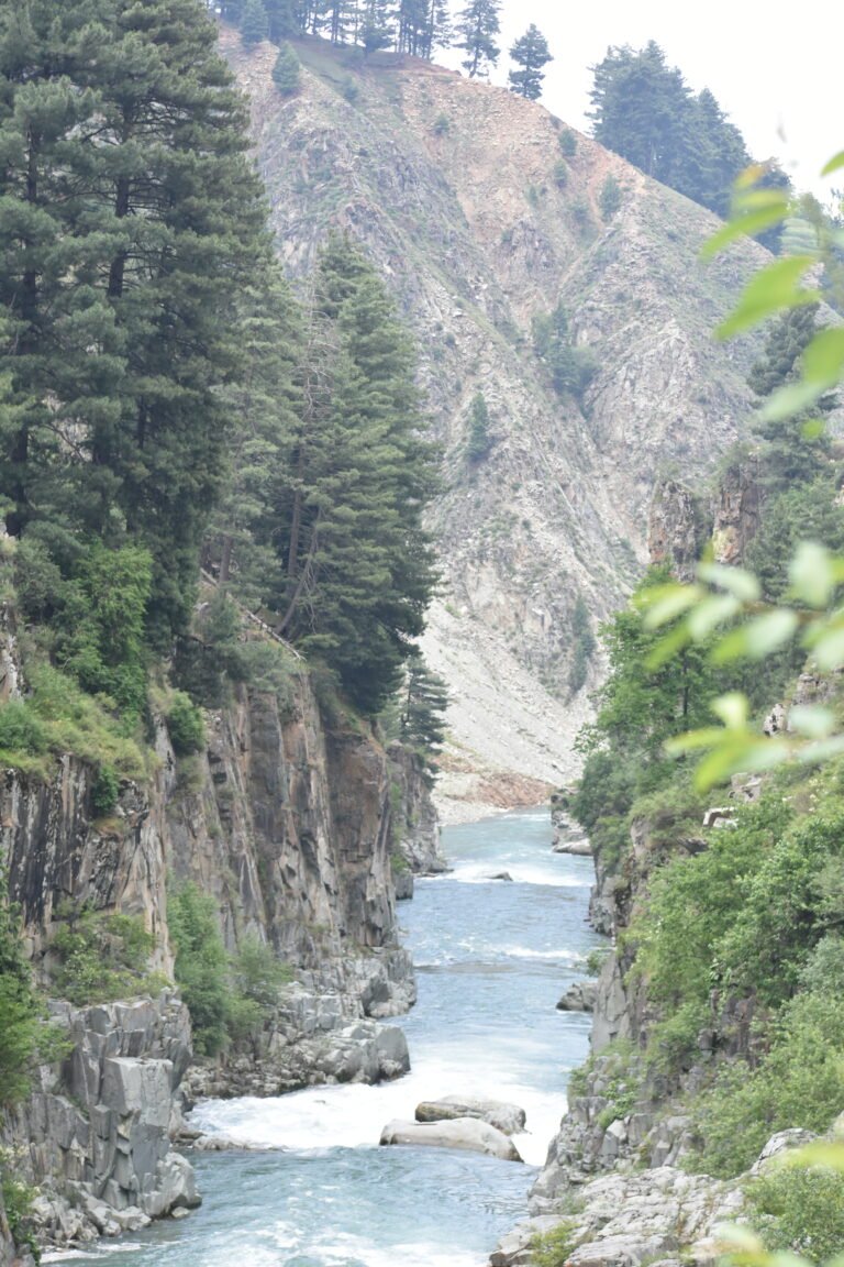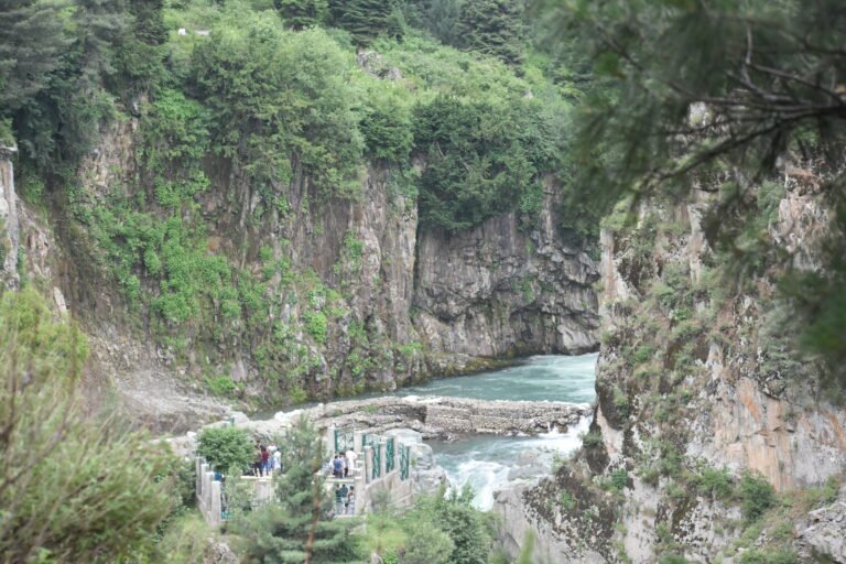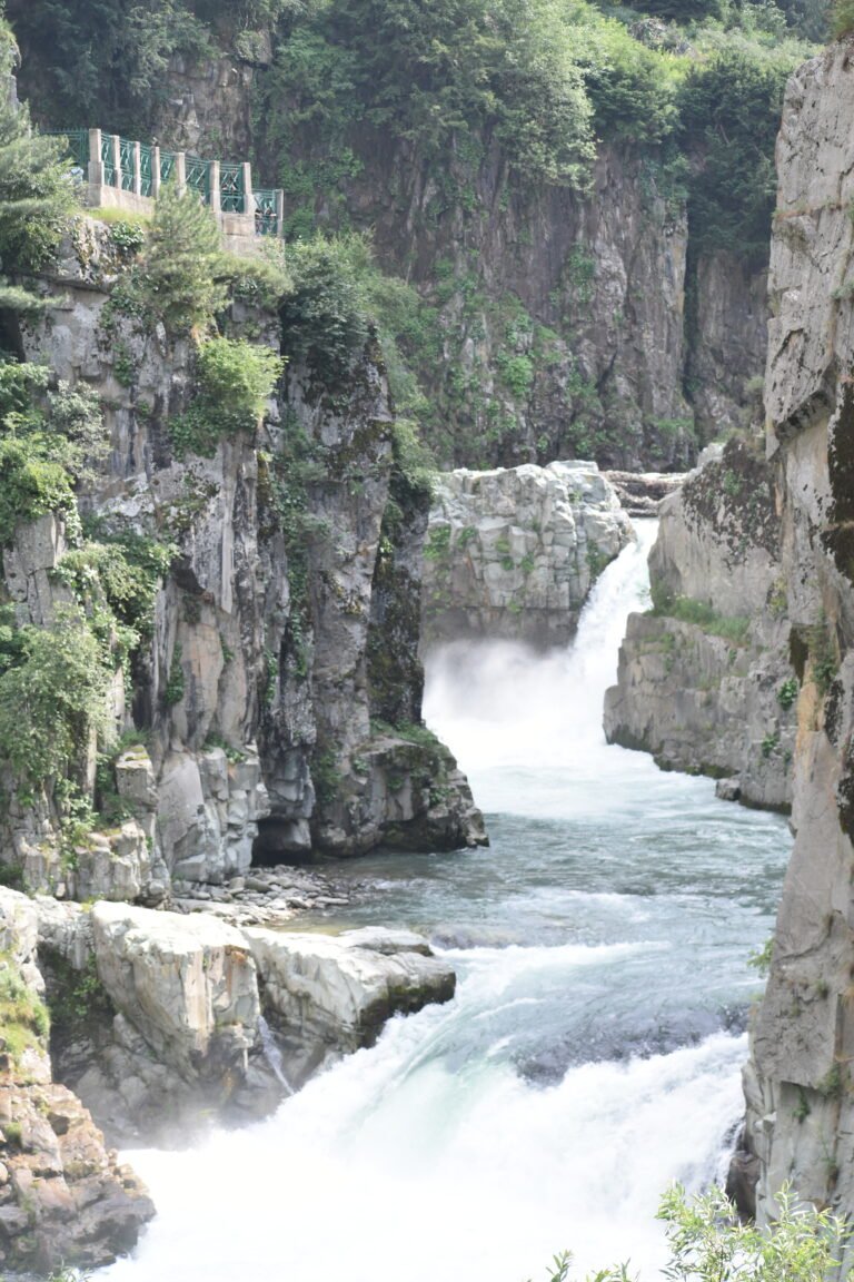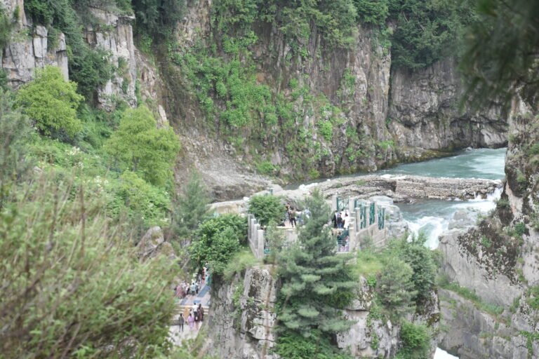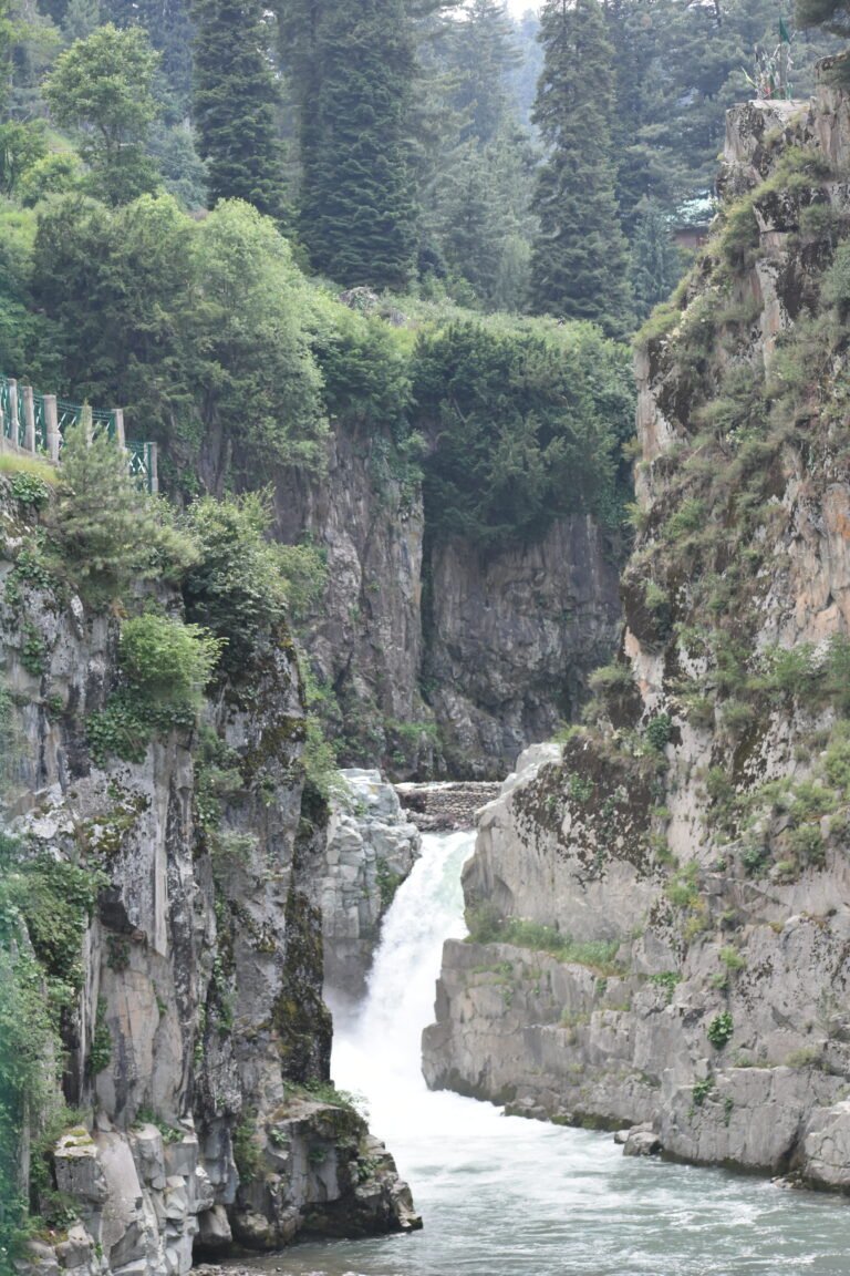 Aharbal Waterfall, often referred to as the “Niagara of Kashmir,” cascades down from a height of approximately 25 meters (82 feet), creating a mesmerizing display of nature’s power and elegance. The water gushes from the Vishav River, cutting through the verdant forests and rocky terrains, making its way into a deep gorge. The sight of the waterfall, with its thundering roar and misty spray, is nothing short of enchanting.