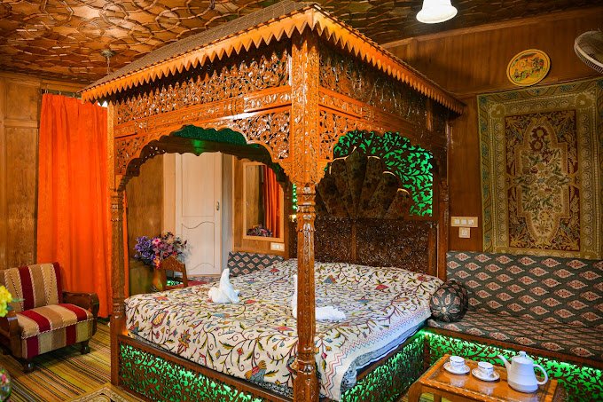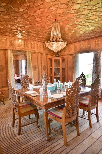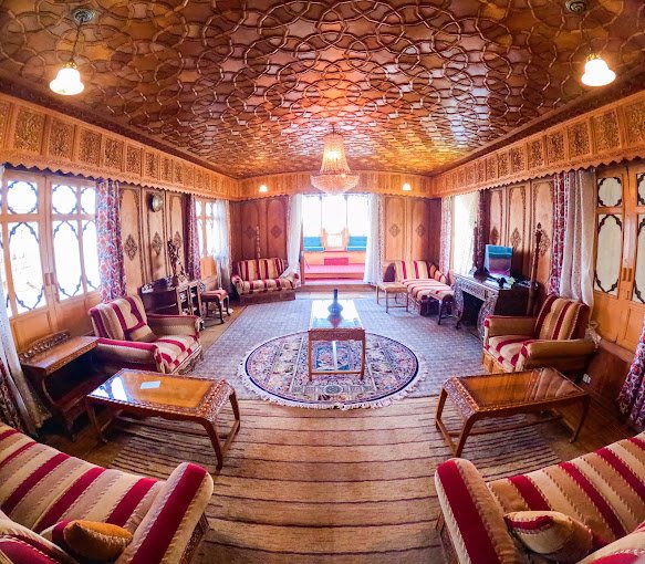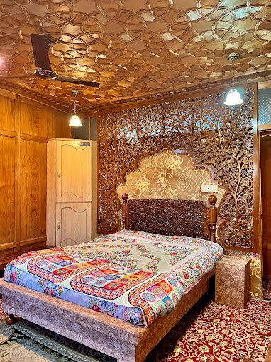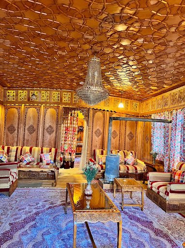 Sher-I-Kashmir Houseboats are a testament to Kashmiri craftsmanship, boasting intricately carved wooden exteriors and lavishly decorated interiors. Each houseboat is adorned with rich carpets, walnut wood furniture, and vibrant Kashmiri embroidery, reflecting the region’s artistic heritage.