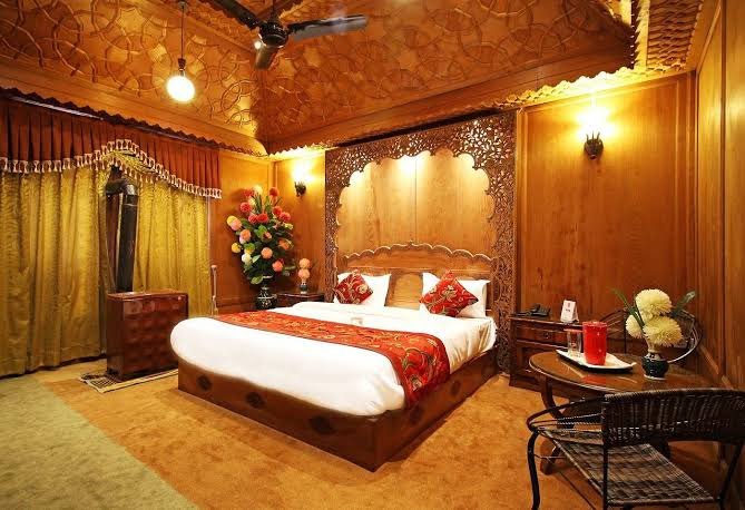 Inspired by the opulence of Mughal architecture, the houseboat is a marvel of craftsmanship. Hand-carved wooden panels, intricate lattice work, and elegant Pashmina furnishings adorn the interiors, creating a regal ambiance reminiscent of the Mughal era. Each suite is a testament to the artisanship of local craftsmen, featuring plush décor and spacious layouts that ensure comfort and sophistication.